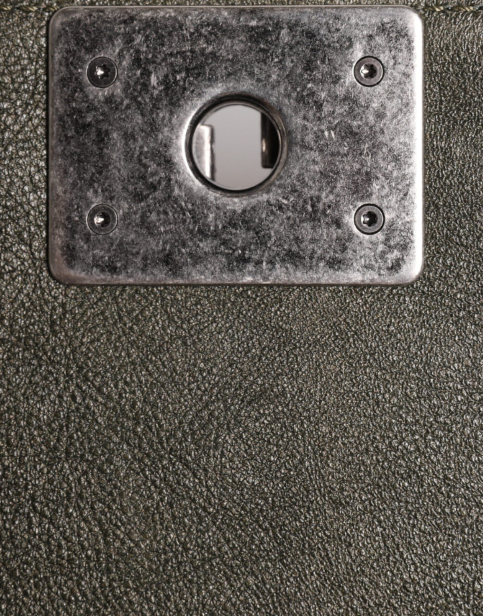 Dark Green Leather Shoulder Bag Gray Metal Purse Bag